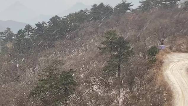 据护林员孙双华介绍,早上6点多,山上下起了雪子,到了8点多,雪是最大的,但目前雪已经停了,山上也没有形成积雪。