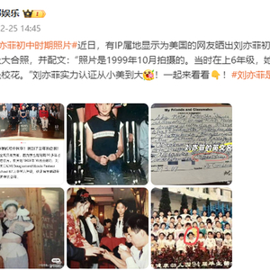 12月25日,据南都娱乐报道,近日,有IP属地显示为美国的博主晒出刘亦菲初中时期的班级大合照,并配文:“这张照片全网只有我有,照片是1999年10月拍摄的。当时在上6年级,她是班花,也是校花。”