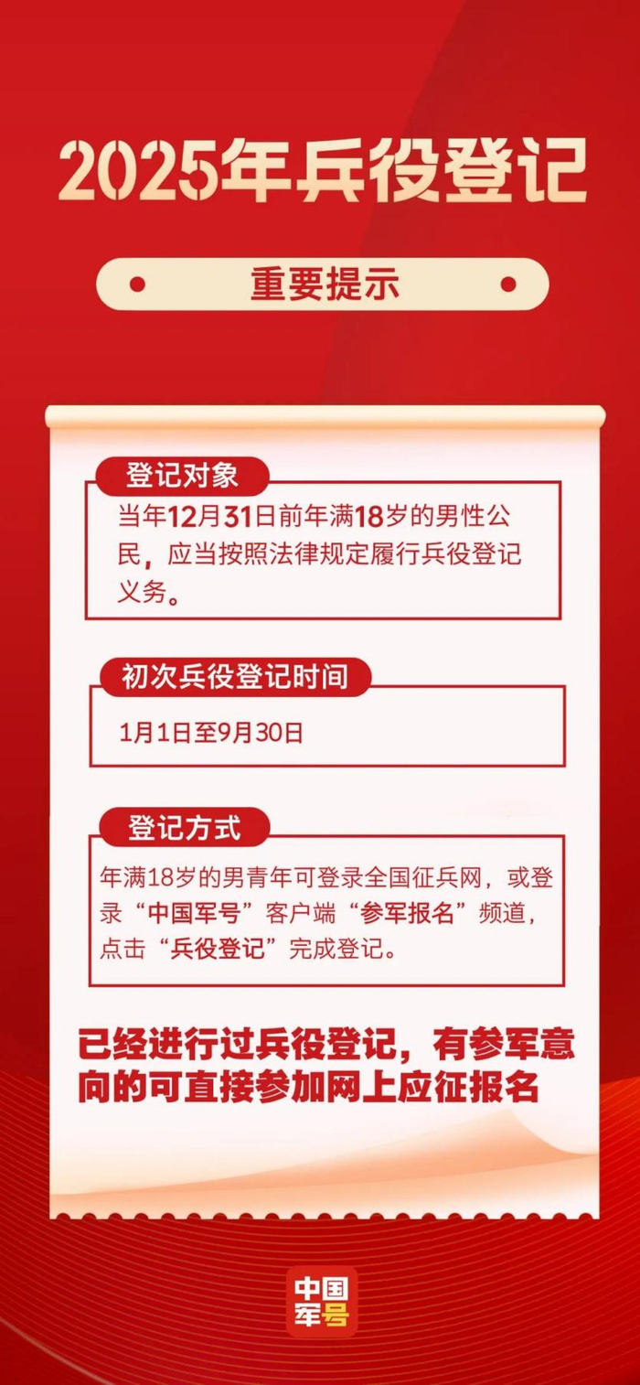 ·1月1日起,2025年的兵役登记工作正式开始。
