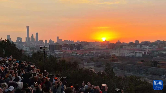 2025年1月1日,人们在北京景山公园迎接新年第一缕阳光。新年第一天,朝阳升起,带给人们无限的美好与希望。