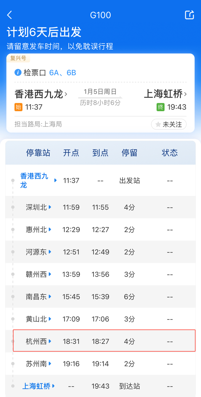 杭州到香港的高铁1月5日开通
