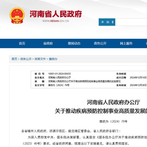 近日,河南省政府办公厅印发《关于推动疾病预防控制事业高质量发展的实施意见》(以下简称《实施意见》)。《实施意见》提出,到2030年,建成国家区域公共卫生中心和若干省级区域公共卫生中心。同时,从系统重塑疾控体系、全面提升疾控专业能力、加强人才队伍建设、加大组织保障实施力度四个方面采取21条措施,从而加快推动全省疾控事业高质量发展。