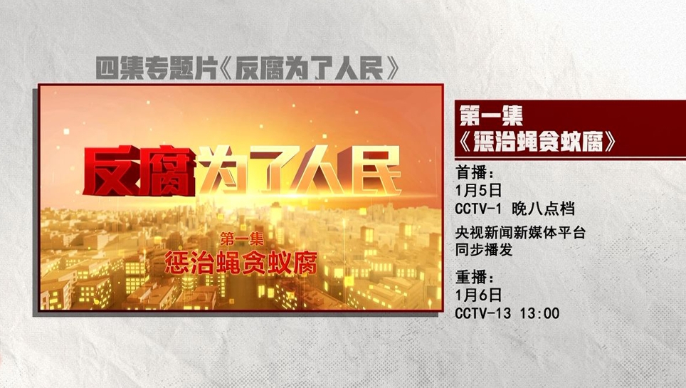 预告丨电视专题片《反腐 为了人民》第一集今晚八点档央视综合频道播出