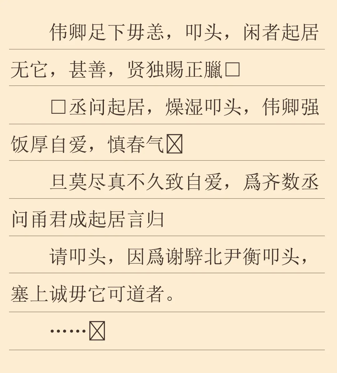 从古至今,书信格式的构成都与礼仪息息相关。汉代儒家思想盛行,人们尊敬长辈、礼敬朋友、礼尚往来的意识很强。简牍所见书信的格式具有时代风格,体现时代风貌,如实地展现了普通人在日常生活中对礼仪的重视。人们在书信往来中频繁地表达尊卑有序,是汉代人多行礼教的真实体现。