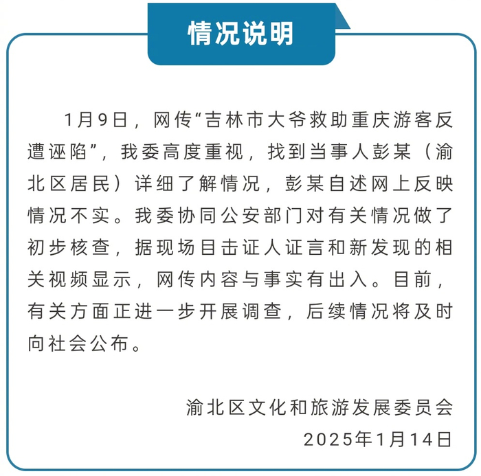 ·吉林市大爷救助重庆游客反遭诬陷?文旅部门:网传内容与事实有出入。