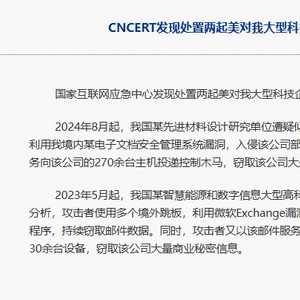 国家互联网应急中心发布美网络攻击我国某先进材料设计研究院事件调查报告