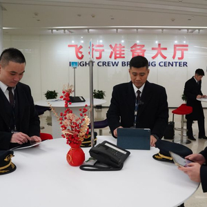 “为了保障航班安全、准点起飞,机组一般要提前1小时50分钟到达飞行部准备大厅。”李富新拉着飞行箱大步流星地走进准备大厅。