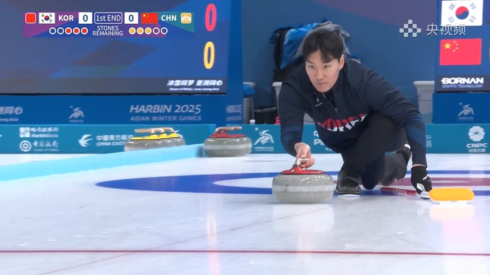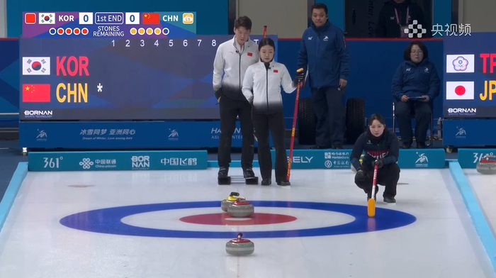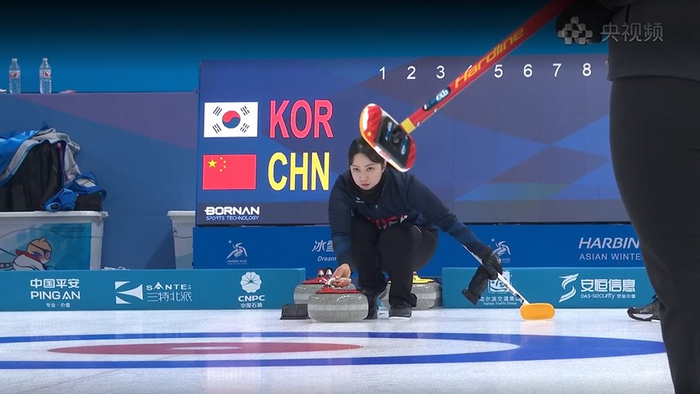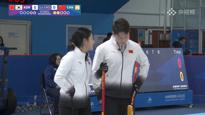 哈尔滨亚冬会冰壶项目,中国队王智宇/韩雨6-4战胜韩国组合成智勋/金敬爱,豪取四连胜