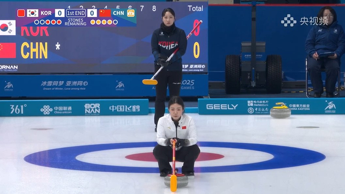 亚冬会冰壶项目四连胜!中国队王智宇/韩雨组合6-4战胜韩国队