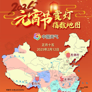 2025元宵节赏灯指数地图出炉 北方大部地区“月伴灯”