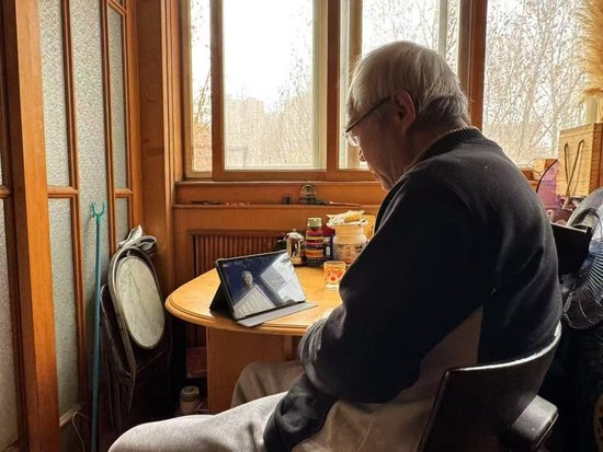 2025年1月26日,天津市南开区的老人崔金海正在同小云健康陪伴智能机中的虚拟“同伴”聊天。新华社记者 梁姊 摄