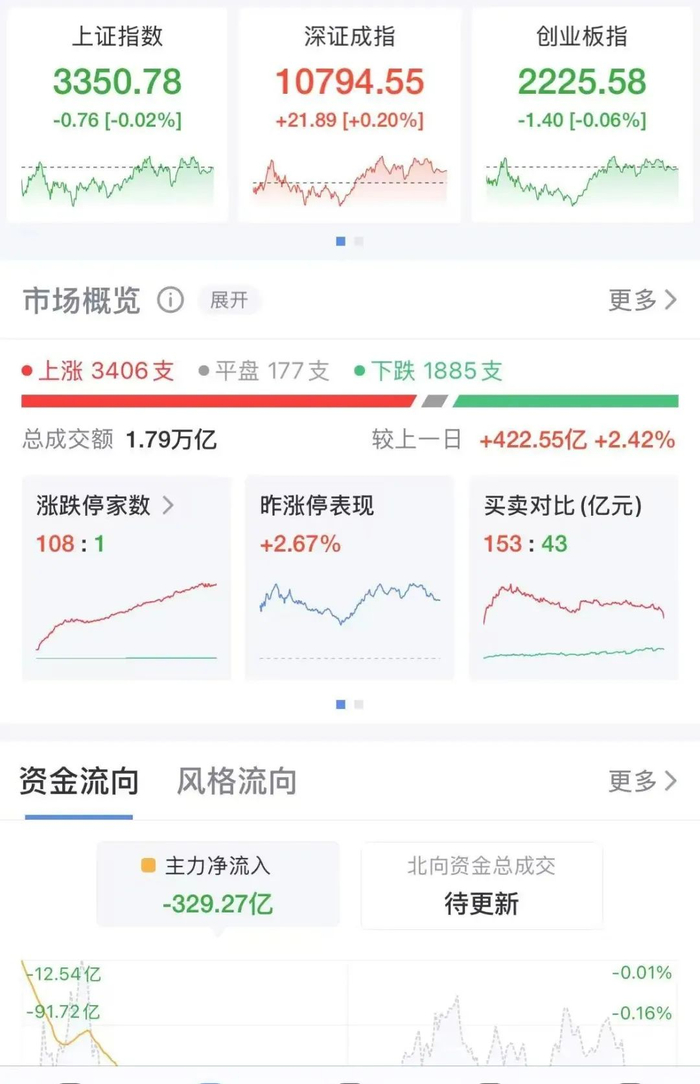 2月20日下午,A股收市,三大指数涨跌不一,上证指数收跌0.02%,深证成指收涨0.2%,创业板指收跌0.06%;北证50收涨1.49%。当天,两市成交额17566亿元,较上一交易日放量356亿元;大盘资金净流出超470亿元。市场股票呈现涨多跌少的态势,3406只股票上涨,1885只股票下跌。其中,107只涨停股、1只跌停股。