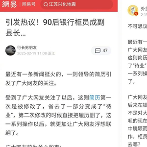 近日,一则“90后银行柜员成副县长”的消息引发网友热议。网传简历显示,青海省乌兰县挂职副县长沈甲骏,曾在青海银行城西支行综合柜员岗工作,2022年升任青海银行城中支行行长助理,2024年2月份进入乌兰县人民政府。