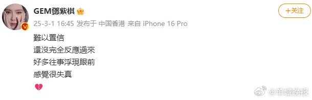 之前,她获悉方大同去世后,曾在在社交平台上写道:“难以置信,还没完全反应过来,好多往事浮现在眼前,感觉很失真。”