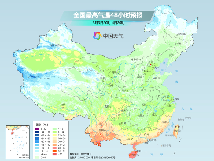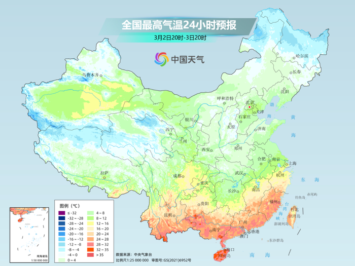 3月2日白天,暖湿气流使出最后一丝气力,将南方暖热推上巅峰,完成了寒潮抵达前的最后冲刺。截至15时,合肥、上海、杭州、长沙、南昌、重庆、贵阳、成都、广州、南宁、海口11个省会首府直辖市的气温创下今年来新高,江南多地最高气温超过30°C,恍如夏日。城市中,杭州和南昌都打破了当地最早30℃日纪录和3月上旬最高气温纪录。