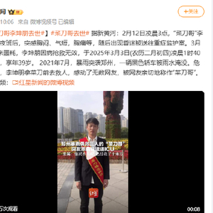 据新黄河:2月12日凌晨3点,“菜刀哥”李坤朋下夜班后,突感胸闷、气短,胸痛等,随后出现昏迷被送往重症监护室。3月3日传来噩耗,李坤朋因病抢救无效,于2025年3月3日(农历二月初四)凌晨1时40分去世,享年39岁。 2021年7月,暴雨突袭郑州,一辆黑色轿车被雨水淹没。危急时刻,李坤朋拿菜刀前去救人,感动了无数网友,被网友亲切地称作“菜刀哥”。
