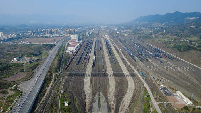 据悉,兴隆场编组站是全国路网性编组站之一,也是重庆中欧班列、西部陆海新通道的始发站,是衔接襄渝线、兰渝线、渝怀线、成渝线、川黔线、成遂渝线和“西部陆海新通道”的铁路枢纽,承担着国内多条铁路干线货物列车及中欧、中老、中越等国际班列的列车解体、编组任务。改造前,兴隆场编组站日均办理车能力为1.75万至2万车,扩能改造之后每日提升1000余车。