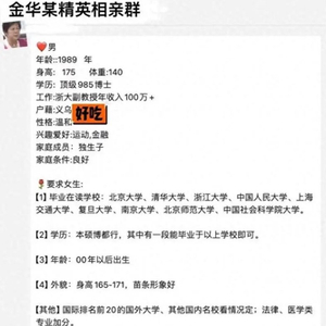 九派新闻注意到,该热帖标题为“浙大副教授选妃”,内容为一名985高校博士毕业、浙江大学36岁副教授相亲信息,其自称年收入百万,身高175厘米,体重140斤。