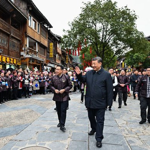 2018年2月11日上午,习近平在四川省凉山彝族自治州昭觉县解放乡火普村了解易地扶贫搬迁和彝家新寨建设情况。离开村子时,身着彝族盛装的村民们排起长队,簇拥着总书记唱起《留客歌》。掌声、歌声、欢呼声在村子里久久回荡。