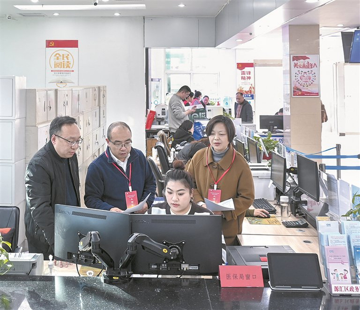 河南省漯河市源汇区纪委监委聚焦医保基金安全运行等关键环节开展专项整治,督促主管部门着力整治医保基金管理中虚报冒领、骗取套取等违纪违法行为,严肃查处监管失职失责及背后的不正之风和腐败问题。图为近日,该区纪委监委工作人员到区行政服务中心医保局窗口走访核实相关情况。尤亚辉 摄