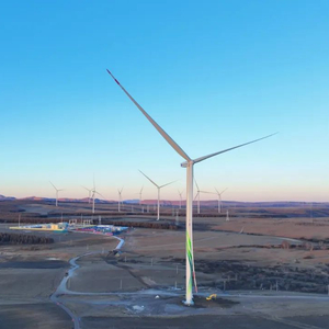 该项目位于内蒙古赤峰市克什克腾旗,总装机容量200兆瓦,采用20台10兆瓦级风力发电机组,刷新了国内陆上风电商业化机组功率纪录。该款10兆瓦超大功率机组的规模化应用显著提升风能利用效率,通过智能运维系统实现远程监控与故障预警,为高寒地区大型风电项目运维管理提供了创新范式。其叶片长度达107米,相当于36层楼的高度;风轮直径达220米,扫风面积3.8万平方米,约等于5个标准足球场的面积。据测算,项目并网后,年均可提供5.9亿千瓦时清洁电力,相当于节约标准煤16.89万吨,减少二氧化碳排放46.39万吨,可满足约30万户家庭年度用电需求,有效助力当地绿色低碳转型发展。