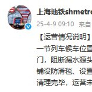 央视网消息:@上海地铁shmetro 微博发布运营情况说明称,4月9日上午8时10分许,4号线南浦大桥站往塘桥方向站台,第一节列车候车位置上方水管局部漏水,车站立即启动应急预案,关闭相应水管阀门,阻断漏水源头,列车运行未受影响。同时,工作人员对站台积水进行清理,并铺设防滑毯、设置隔离区域,引导乘客有序通行。8时50分左右,漏水止住,现场清理完毕,运营未受影响。