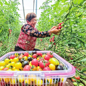 3月12日,在新安县五头镇北沟村丰硕特色果蔬采摘园,种植户正采摘七彩小番茄。当地依托丰富的农业资源,积极发展特色果蔬种植产业,带动群众增收,助力乡村振兴。