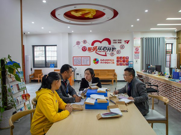 广西壮族自治区阳朔县纪委监委开展“群众点题、纪检干部领题”活动,群众通过便民服务中心等向纪委“点题”反映发生在身边的“微腐败”问题,纪检干部“领题”后将问题登记在册、推动逐一解决。图为该县纪检监察干部“室地”联动在阳朔镇北门厄社区党群服务中心“领题”。(广西壮族自治区阳朔县纪委监委  唐凌霞 摄)