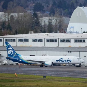 资料图片:2024年1月6日,美国阿拉斯加航空公司发生事故的波音737 MAX 9型客机停靠在波特兰的一处维修站。(新华社发)