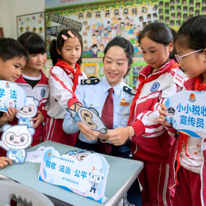 “同学们,你们知道我们每天坐的教室、过的马路是怎么建成的吗?”税务干部用通俗易懂的语言向同学们讲解税收“取之于民、用之于民”的本质,并通过“税收大家庭”的比喻,将增值税、个人所得税等税种形象化,让孩子们在轻松活泼的氛围中认识税收、了解税收。
