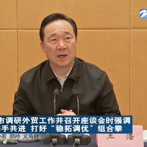 王浩指出,要一体开拓国际国内两个市场,推动“千团万企拓市场争订单”行动扩面提质,拓宽外贸产品的国内销售渠道,稳步推进内外贸一体化发展。
