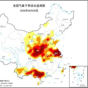 今年4月1日以来,华北南部、西北东部、华中北部、华东中部和北部、华南大部、西南南部等地降水偏少,气温偏高,气象干旱迅速发展。据4月30日气象干旱监测,陕西大部、山西南部、河南大部、安徽大部、湖北大部、江苏中部和南部、广西西部和南部、云南中部等地存在中度及以上气象干旱,陕西南部、河南西部、江苏南部以及广西南部等地特旱。预计,未来3天,华南中北部、云南南部等地将有中到大雨,局地暴雨,对缓解气象干旱有利,其余大部分旱区仍将少雨,气象干旱将持续或发展。