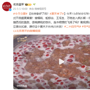 [你准备好了吗?#夏天来了#]今天13点56分57秒,二十四节气正式开启盛夏篇章!蝼蝈鸣、蚯蚓出、王瓜生,万物进入疯长期~你准备好迎接:冰镇西瓜的脆甜、傍晚蝉鸣的悠长、连衣裙摆的飞扬了吗?戳视频↓感受北京昌平版立夏仪式感,愿你这个夏天不长肉只长笑!