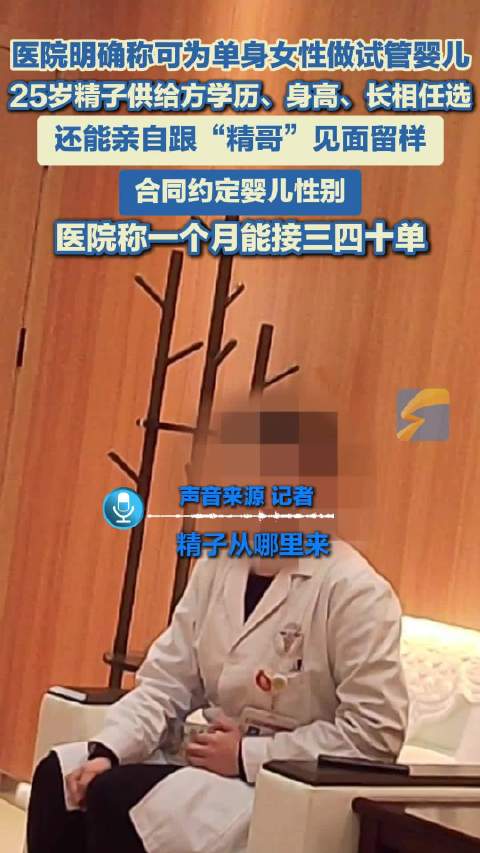 医院明确称可为单身女性试管助孕 25岁精子供给方学历、身高、长相任选 合同约定婴儿性别