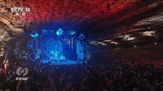 贵州绥阳县温泉镇,因溶洞喀斯特地貌资源丰富,假期里当地将音乐会“搬进”了溶洞,专业音响系统被布置在钟乳石群间,使音乐既能保留原声质感,又能叠加洞穴独有的空灵回响。洞中主舞台还引入全息投影技术,将银河系动态光影投射在亿万年形成的洞顶岩壁上,营造“地心音乐会”的奇幻氛围。