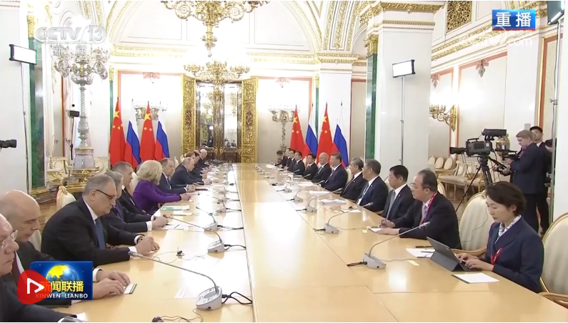 当地时间5月8日上午,俄罗斯总统普京同中国国家主席习近平在莫斯科克里姆林宫举行会谈。两国元首就中俄关系和重大国际和地区问题深入交换意见,一致同意坚定不移深化战略协作,推动中俄关系稳定、健康、高水平发展;共同弘扬正确二战史观,维护联合国权威和地位,维护国际公平正义。