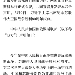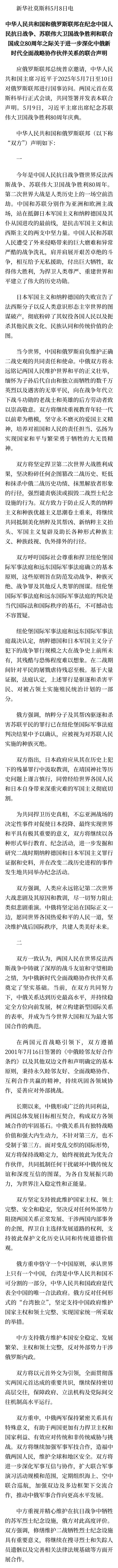中华人民共和国和俄罗斯联邦在纪念中国人民抗日战争、苏联伟大卫国战争胜利和联合国成立80周年之际关于进一步深化中俄新时代全面战略协作伙伴关系的联合声明