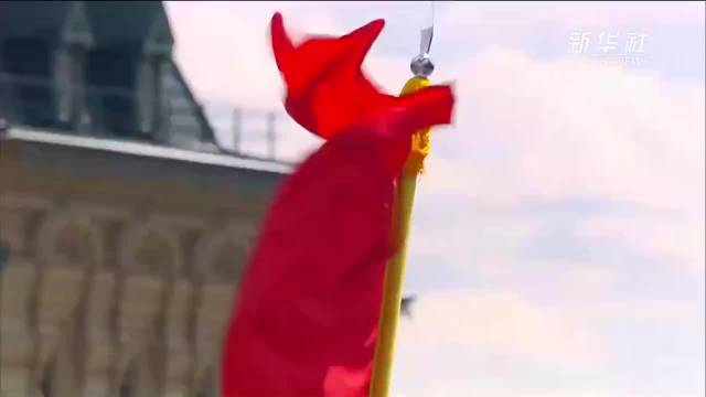 当地时间5月9日,俄罗斯举行盛大庆典,纪念苏联伟大卫国战争胜利80周年。中国人民解放军仪仗司礼大队通过红场。