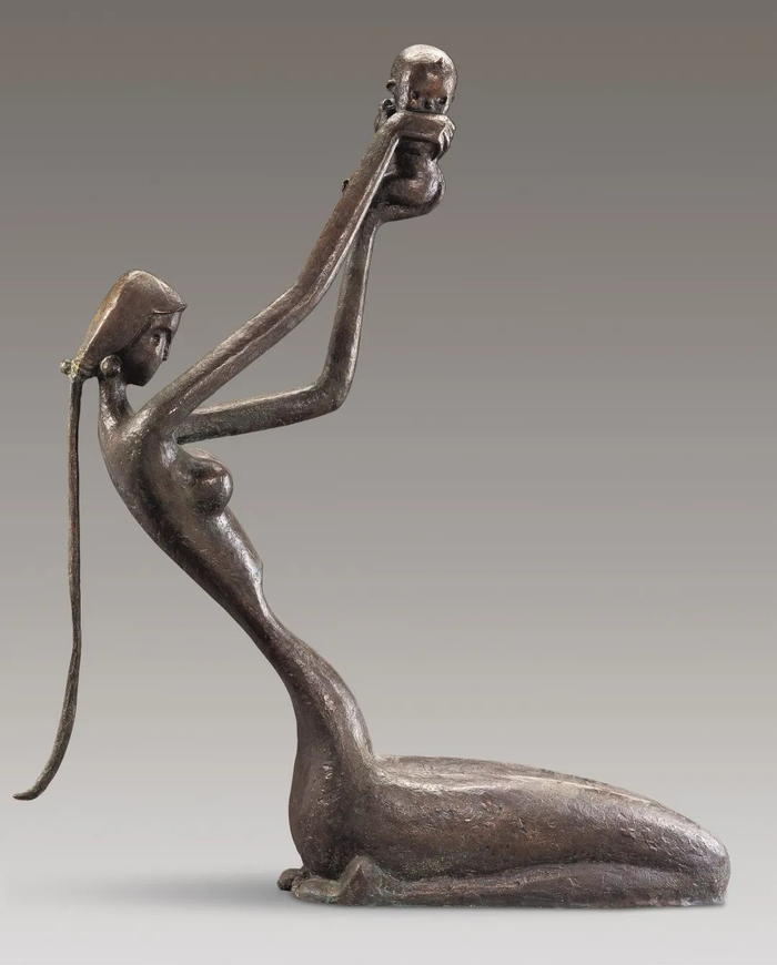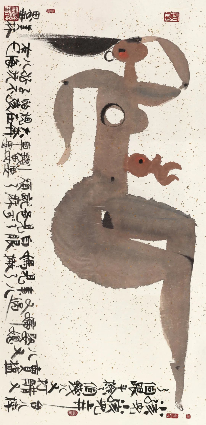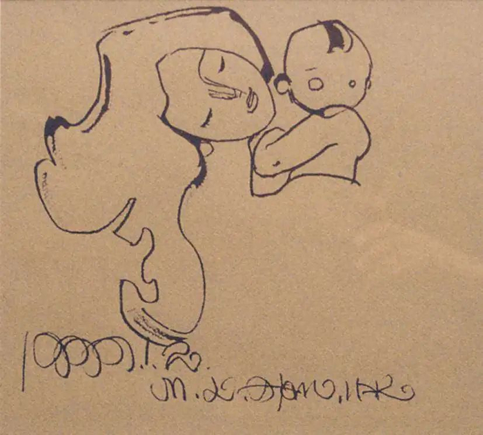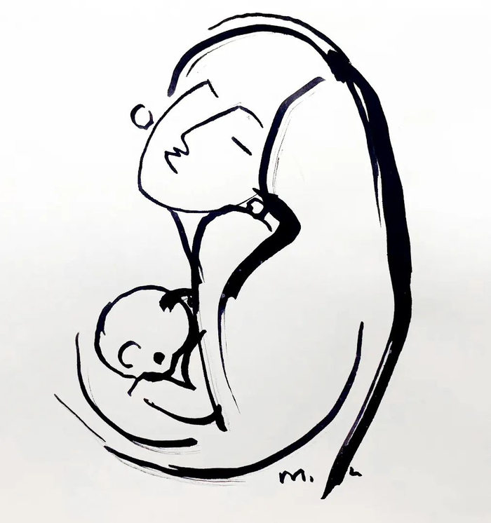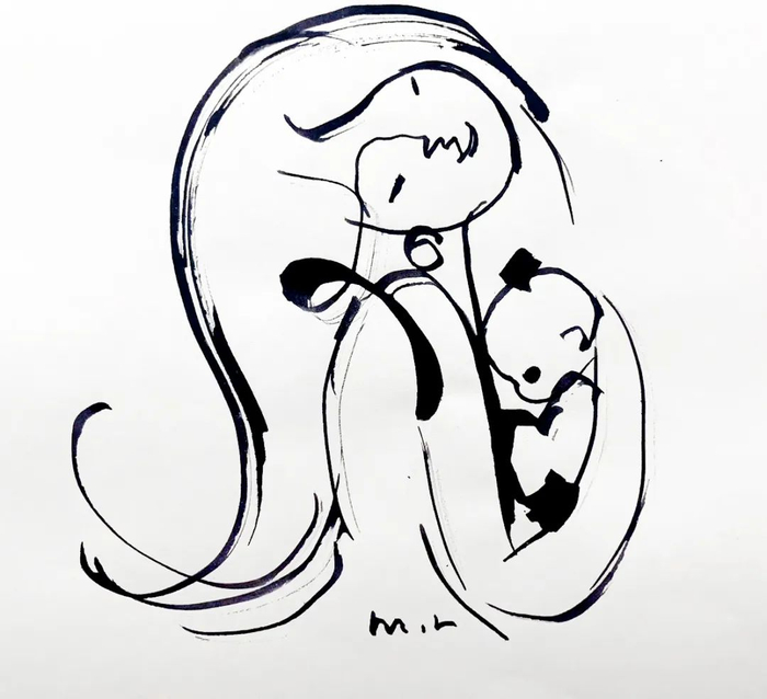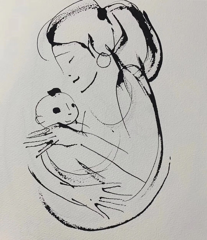 在韩美林的艺术创作中,对“母爱”的表达,占据了一半天地。他把这种最伟大、最纯粹的情感,通过绘画、雕塑、书法等形式展现出来,表达对伟大母爱的艺术讴歌。