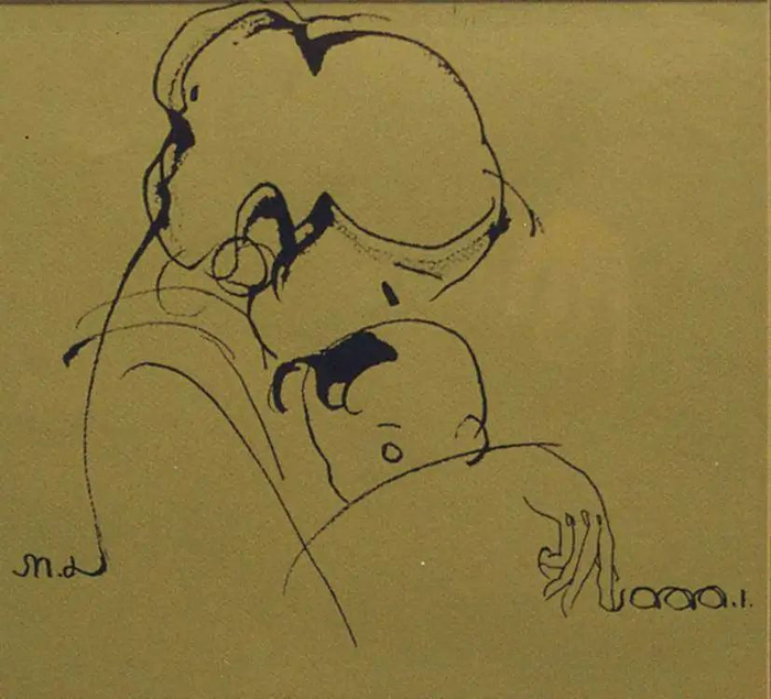 韩美林在他的散文集《前面是未知数》中写道:母爱是最伟大、最无私的爱,没有一个人不爱自己的孩子,包括动物、植物也爱它的孩子和种子。