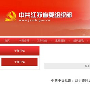 据江苏省委组织部网站5月16日消息,中共中央批准:刘小涛同志任江苏省委副书记。