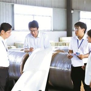 当日,记者跟随第二检查组来到位于南漳县的湖北华海纤维科技股份有限公司。在企业生产车间,机器轰鸣声不绝于耳,记者看到造纸设备快速运转,白色纸张源源不断从中“跃”出,一片热闹景象。