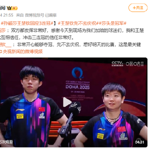 赞!孙颖莎王楚钦回应3连冠