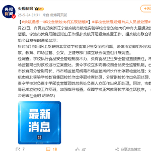 [#余姚通报一学校食堂绞肉机发现活蛆#]#学校食堂现活蛆有关人员被处理# 5月23日,有网友反映浙江宁波余姚市姚北实验学校食堂的绞肉机中有大量蠕动的活蛆。宁波市教育局随后派出工作组赴余姚开展紧急处置工作,据余姚市联合调查组今日发布的通报显示:针对5月23日网上反映姚北实验学校食堂卫生安全的问题,余姚市立即组织纪检监察、教育、市场监管、公安、卫健等部门成立联合调查组开展调查。经调查,学校执行食品安全管理制度不力,负有食品卫生安全管理直接责任。市市场监管局已对该校进行立案查处,责令学校立即完善校园食品安全监管机制。已对市教育局分管副局长、市市场监管局朗霞市场监管所所长作出停职检查处理;对余姚市姚北实验学校教育集团校长作出停职检查处理,分管副校长作出免职处理,并责令学校对负责小学部食堂管理的总务处负责人立即作出免职处理。同时,市教育局已成立驻校工作专班,加强指导检查,保障学校正常教育教学和生活秩序。(总台记者杜金明 胡浩然)