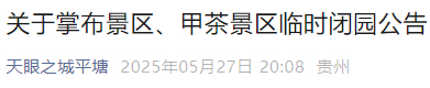 受此影响,贵州多个景区发布紧急通知,详情如下: