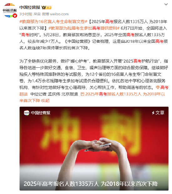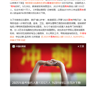 2025年高考报名人数1335万人 为2018年以来首次下降