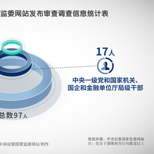 2025年5月,中央纪委国家监委网站共发布97名党员领导干部接受审查调查信息。其中,中管干部7人,中央一级党和国家机关、国企和金融单位干部17人,省管干部73人。
