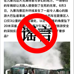 据“平安九寨”消息,近日,四川省阿坝州九寨沟县公安局发现,有网民在今日头条、百度APP等平台发布题为《九寨沟车祸生死瞬间,大巴坠崖惊魂实录,平安为何成为奢侈品》的帖文,声称“九寨沟景区外环线发生大巴车坠崖交通事故”。经公安机关全面核查,该信息纯属虚构,系个别网民恶意编造的谣言。