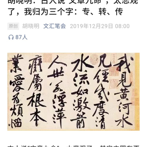 上海文化学术圈很快“破案”,这位学者就是华东师范大学终身教授、上海写作学会会长胡晓明,他在一篇发于“文汇笔会”的《胡晓明:古人说“文章九命”,太悲观了,我归为三个字:专、转、传》里谈及“专、转、传”。