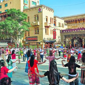 文化活动成为节日最绚丽的风景线。6日,“丝路山水同根同心 壮美巴州同梦同行”千人广场秀活动在库尔勒鸿雁广场启幕,1300多名群众的精彩表演,为大家献上一场极具文化魅力的视听盛宴。